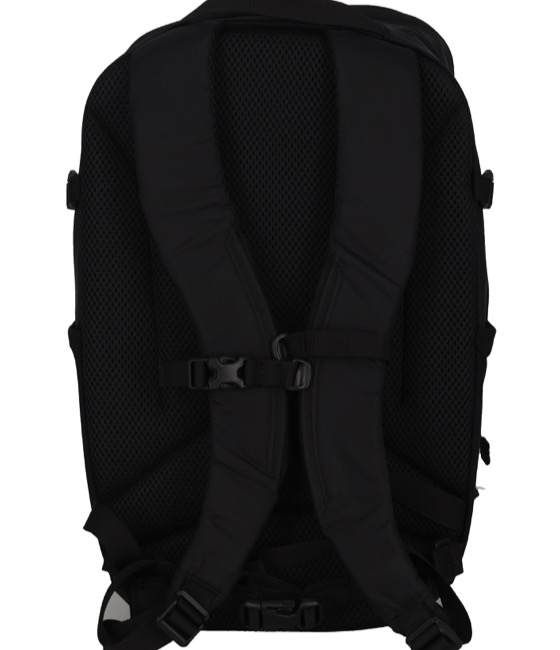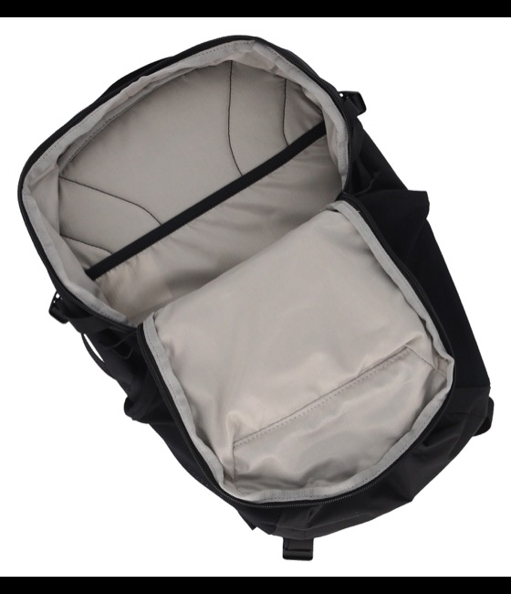 表地に140デニールのMINI RIP NYLONを使用した、小回りのきくバックパック。小ぶりなサイズながらA4サイズが収納でき、13インチ程度に対応するPCスリーブも備えています。フロントにはキーフック付きのジッパーポケット、両サイドにはペットボトルや傘を収納しやすい伸縮性メッシュポケットを配置。背面とショルダー裏は通気性に優れたメッシュ仕様で、チェストストラップと取り外し可能なウエストベルトも装備しています。必要なものをすっきり持ち歩ける、軽さ重視のシンプルなバックパックです。